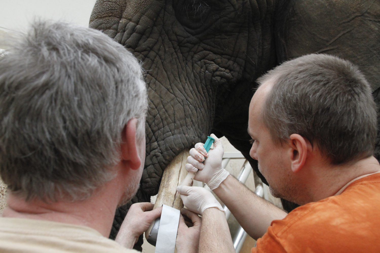 Minulý týden přistoupili ošetřovatelé a zoologové v Safari Parku Dvůr Králové k náročnému ošetření jedné ze samic slona afrického. Slonici Saly se podél obou klů vytvořily hluboké praskliny, které by mohly do budoucna vést k vážnému poranění. Z toho důvodu jí byly oba kly zkráceny.