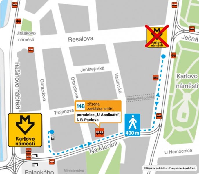 Z důvodu výměny pohyblivých schodů a dalších prací (např. elektro práce na novém osvětlení, silových rozvodech, rozvaděčích a slaboproudých zařízeních) je od úterý 9. října 2018 přibližně do srpna 2019 uzavřen vstup i výstup ze stanice metra do oblasti Karlova náměstí. Vstup i výstup ze stanice metra Karlovo náměstí je umožněn pouze vestibulem směrem k Palackého náměstí.