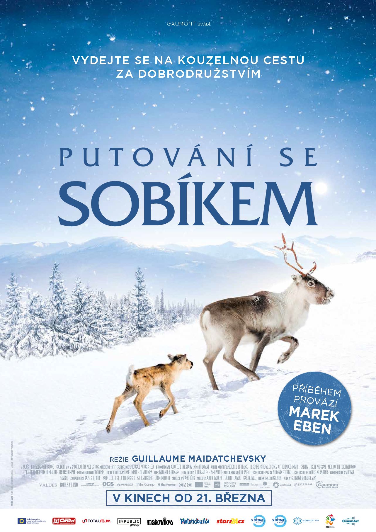 Film Putování se sobíkem vypráví o prvním roku života divokého soba, křehkého a zranitelného, který se musí potýkat s nesčetnými výzvami a nebezpečenstvími. Jeho velké dobrodružství se odehrává ve Finsku, v nádherné laponské přírodě. Průvodcem na sobíkově cestě bude Marek Eben, který namluvil český komentář.