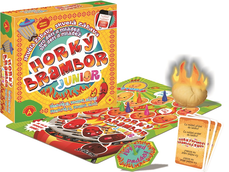 Znáte novou hru „Horký brambor“ značky Alexander? Je to hra nabitá smíchem, napětím a dobrou náladou pro děti a mládež i jejich rodiče, kterou si může zahrát 2-8 hráčů bez rozdílu věku. Vyzkouší si rychlost přemýšlení, postřeh a užijí si legraci při přeřeknutí a „zoufalých“ výmyslech. Jak na to?