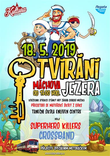Vydejte se v sobotu 18. května na zahájíme turistické letní sezóny u Máchova jezera! Tradiční otvírání jezera, ke které patří slavnostní odemčení obřím klíčem, doprovodí námořníci! Pruhovaná trika jsou vítána! Těšit se můžete opět na odpoledne plné zábavy.
