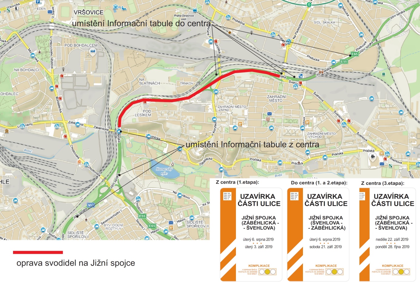V úterý 6. srpna Technická správa komunikací zahájí opravné práce na Jižní spojce. Opravy budou spočívat v obnově části povrchu vozovky, která je nejvíce zatížená, tedy pravého jízdního pruhu a bezpečnostního záchytného systému.