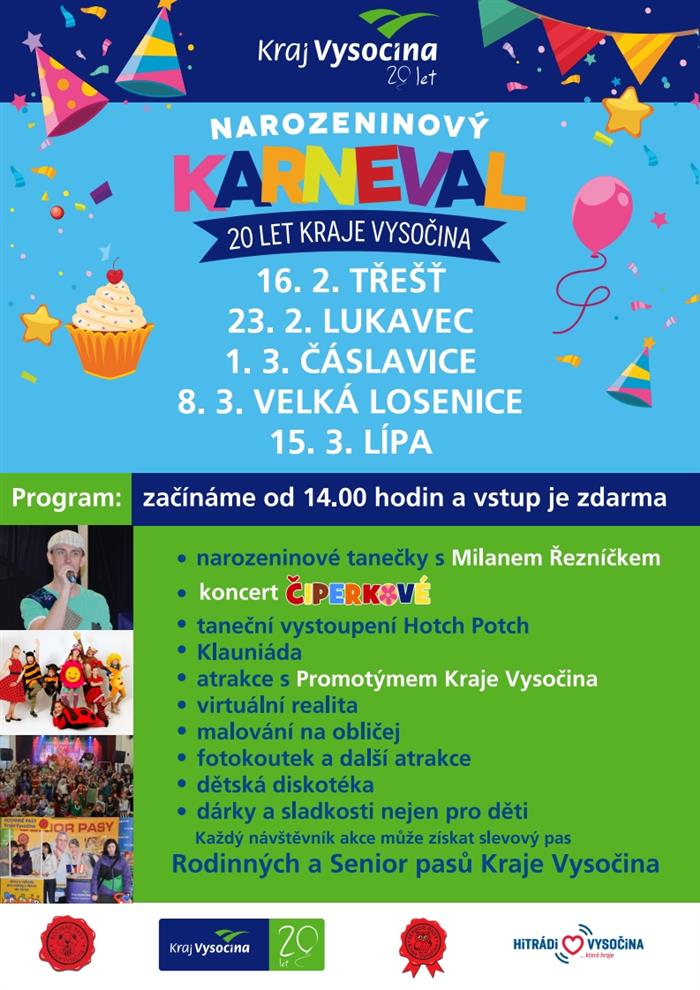První narozeninový karneval Kraje Vysočina, který se uskutečnil v Třešti navštívilo téměř 500 dětí, rodičů a prarodičů. „Takový zájem ze strany veřejnosti všech věkových skupin mě utvrzuje v tom, že aktivity, kde se potkávají všechny generace, mají smysl a podporují tolik přínosný mezigenerační dialog,“ uvedl na adresu nedělního karnevalu náměstek hejtmana Pavel Franěk, který návštěvníky […]