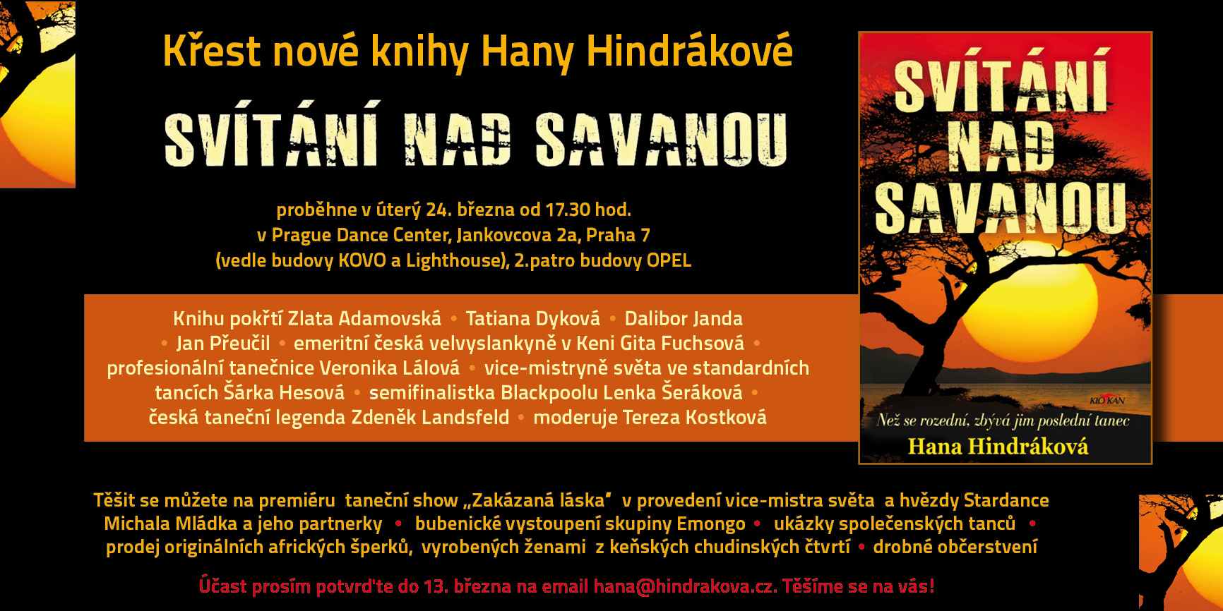 Srdečně Vás zveme na slavnostní křest nové knihy Svítání nad savanou, které proběhne 24. března v Praze.