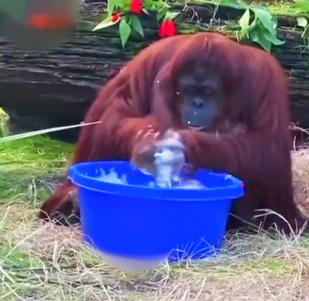 Tento orangutan v Centru pro velké lidoopy na Floridě byl viděn , jak si umývala ruce déle než 20 sekund – domnívají se, že si všimla svých strážců, kteří dělají totéž.