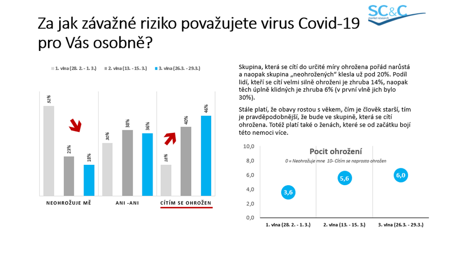 Veřejnost je podle výsledků výzkumu SC&C otevřena sdílení údajů a využití „chytré karantény“. Dvě třetiny populace jsou ochotny sdílet údaje o poloze pro vyhledávání nakažených a více než polovina kvůli tomu, aby se mohly omezit plošné zákazy. V obou případech častěji souhlasí muži a možná překvapivě je nejochotnější nejstarší generace.