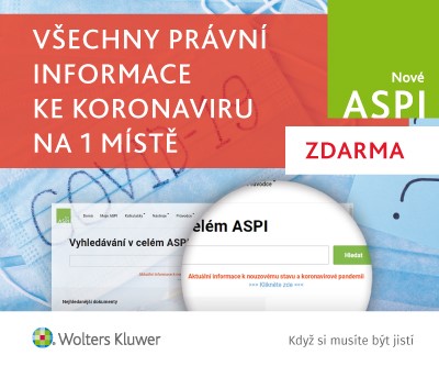 Společnost Wolters Kluwer zpřístupnila zdarma všechny právní informace ke koronaviru. Platná znění vyhlášek, usnesení i zákonů včetně komentáře krizového zákona jsou k dispozici veřejnosti bezplatně, a to v rámci služby ASPI dostupné na noveaspi.cz. Zájemci tak mají přístup k přehledným a ověřeným informacím, na které se mohou spolehnout.