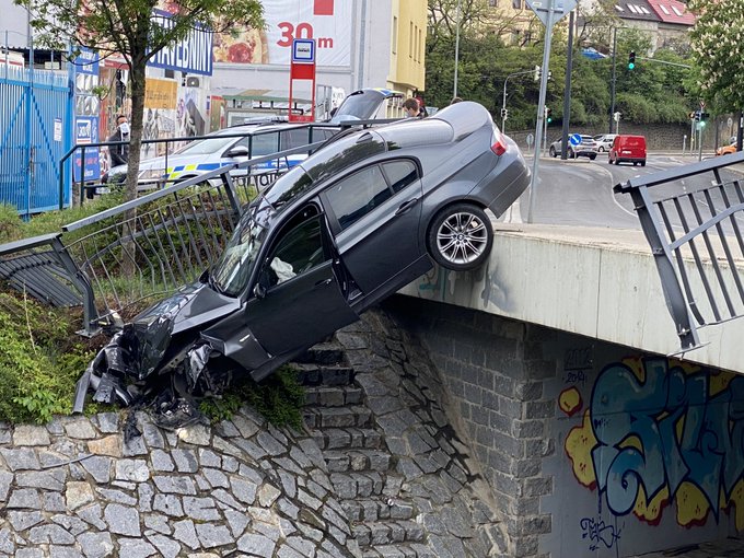 V Michelské ulici prorazilo osobní auto mostní zábradlí a sjelo z komunikace