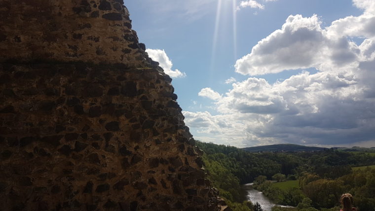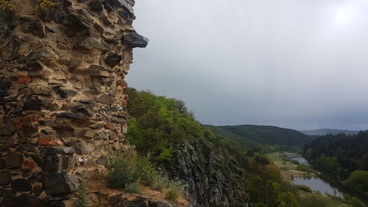 Dojeli jsme do obce Skryje, která leží v CHKO Křivoklátsko, nad pravým břehem řeky Berounky. Zaparkovali jsme na náměstí v blízkosti kostela Sv. Michaela Archanděla. Cílem našeho pěšího výletu je zřícenina hradu Týřov.