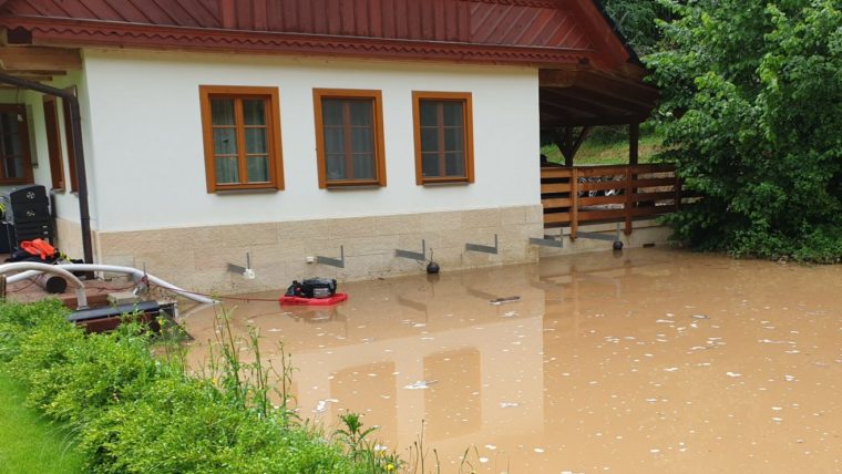 Bouřky a vydatné deště v Libereckém kraji . Dnešní odpolední bouřka postihla zejména část Semilska. Lokální záplavu a nánosy bahna hasiči řešili v obcích Příkrý a Slaná. V Troskovicích stále probíhá čerpání zaplaveného rodiného domu několika čerpadly.