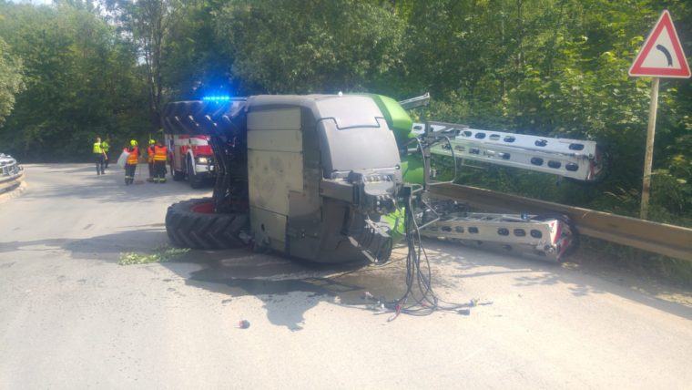 U převráceného postřikovače zasahuje jednotka z Radotína. Okolnosti nehody šetří PolicieCZ. Hasiči zasypali uniklé provozní kapaliny. Na místo jede ještě automobilový jeřáb ze Strašnic.