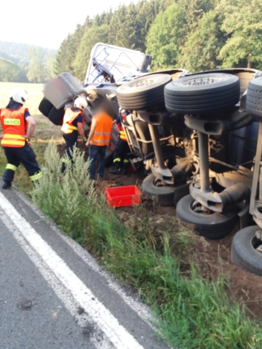 K dopravní nehodě kamionu, který havaroval na silnici č. 325, vyjeli profesionální hasiči ze Dvora Králové nad Labem, Trutnova a JSDH Hostinné.