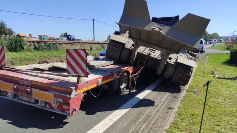 Policisté museli omezit provoz na sil. I/38, 113,7km na Kutnohorsku. Z nákladního tahače se uvolnil převážený sběratelský kousek – tank