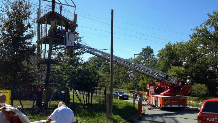 Veselští hasiči odpoledne zachraňovali ženu v lanovém centru ve Veselí nad Moravou. Žena si poranila nohu na lanovce a uvízla ve výšce 10 metrů.