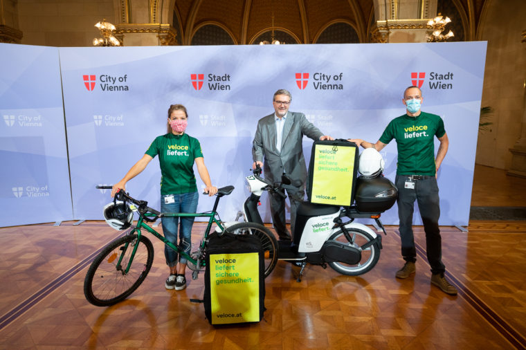 Rychleji, pohodlněji, ekologicky, s vyšší kapacitou a menšími nároky na zdravotnický personál. Nově zavedené vídeňské koronavirové testy na principu kloktání vozí kurýři na kolech a e-mopedech až do domácnosti.