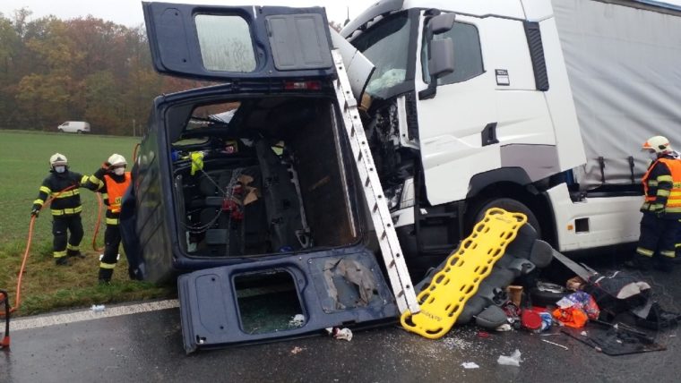 K tragické nehodě dodávky a kamionu na silnici I/35 mezi Chvojencem a Holicemi vyjížděly v pátek 30. října v 13.27 hodin dvě jednotky hasičů. Dodávka zůstala doslova nalepená na kamionu. Uvnitř zůstalo zaklíněných šest osob. Hasiči postupně vyprostili dvě zraněné osoby pomocí hydraulického vyprošťovacího zařízení. Ty byly následně předány do péče zdravotníkům.