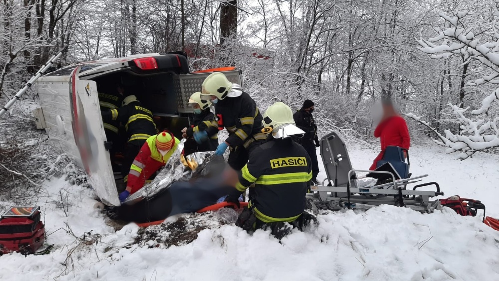 Na komunikaci u části obce Hlinné na Rychnovsku havarovala ve čtvrtek ráno přepravní sanita, přičemž se dostala mimo komunikaci a skončila ve vzdálenosti několika metrů převrácená na bok.