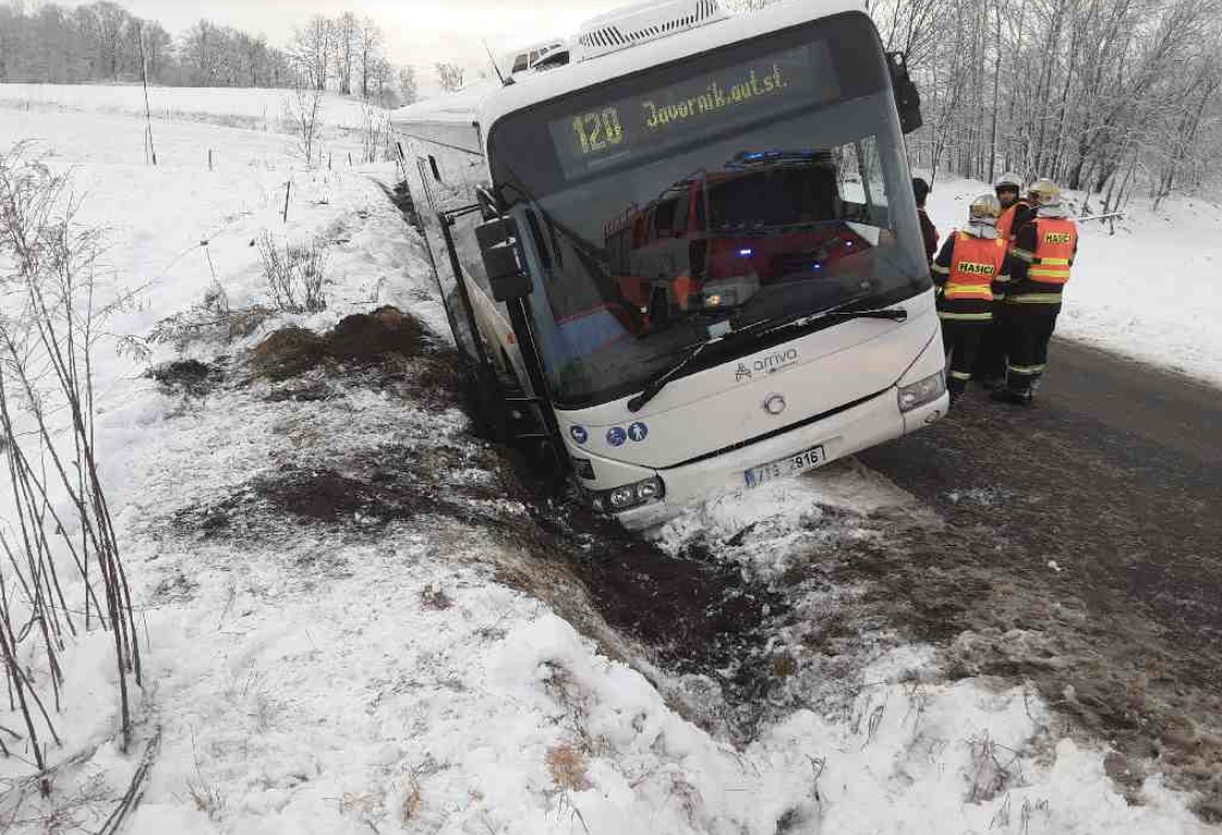 Tři jednotky z řad profesionálních a dobrovolných hasičů zasahovali u dopravní nehody autobusu na komunikaci mezi Vápennou a Žulovou na Jesenicku.