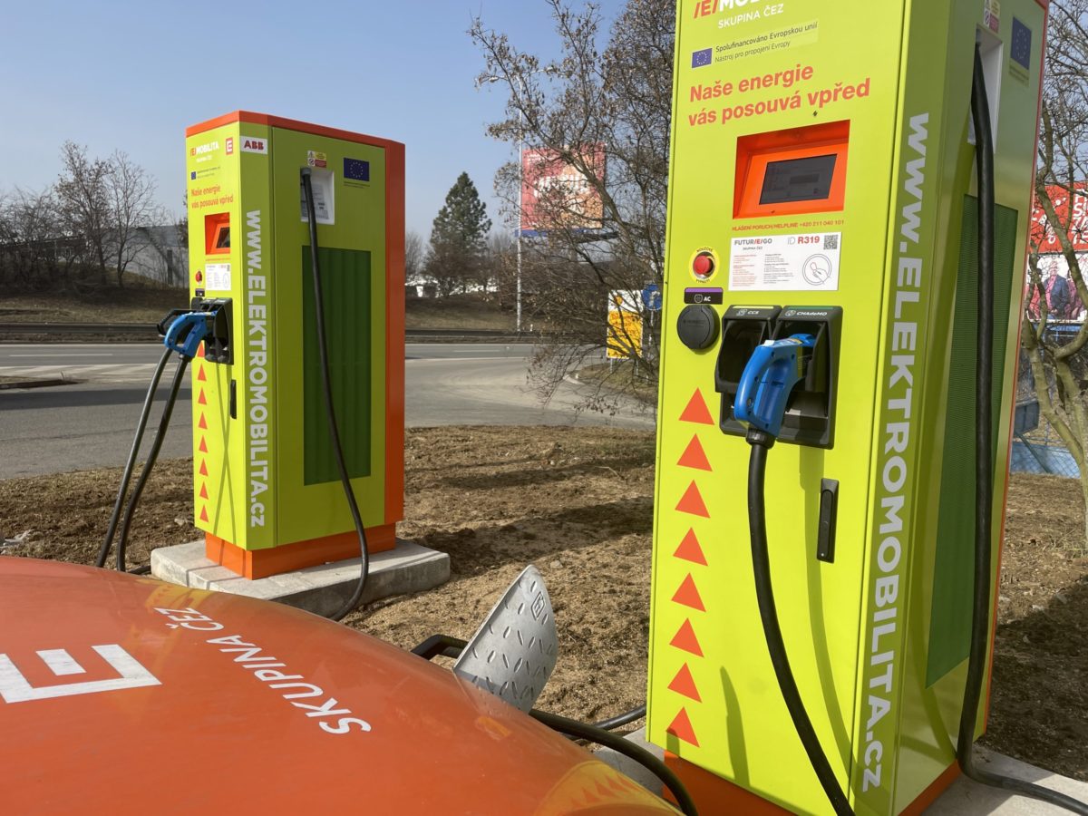 Dvojice nově zprovozněných rychlodobíjecích stanic je řidičům elektromobilů k dispozici v brněnském areálu čerpací stanice Shell na Hradecké ulici.