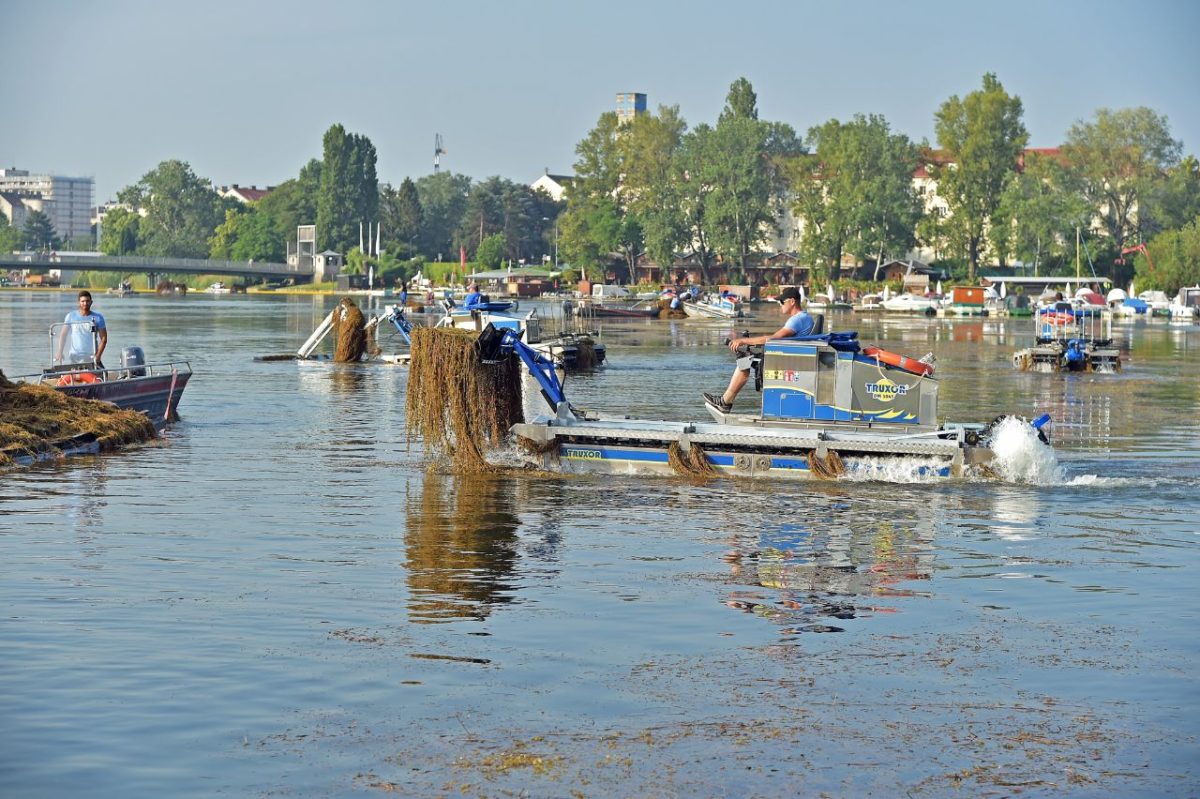 Tisíce obyvatel Vídně tráví v letních měsících čas koupáním v bočním ramenu Dunaje. To však v uplynulých letech intenzivně zarůstá podvodními rostlinami. Magistrát proto od jara do podzimu reguluje růst rostlin speciálními obojživelnými sekačkami. Tento týden zahájil první letošní sečbu.