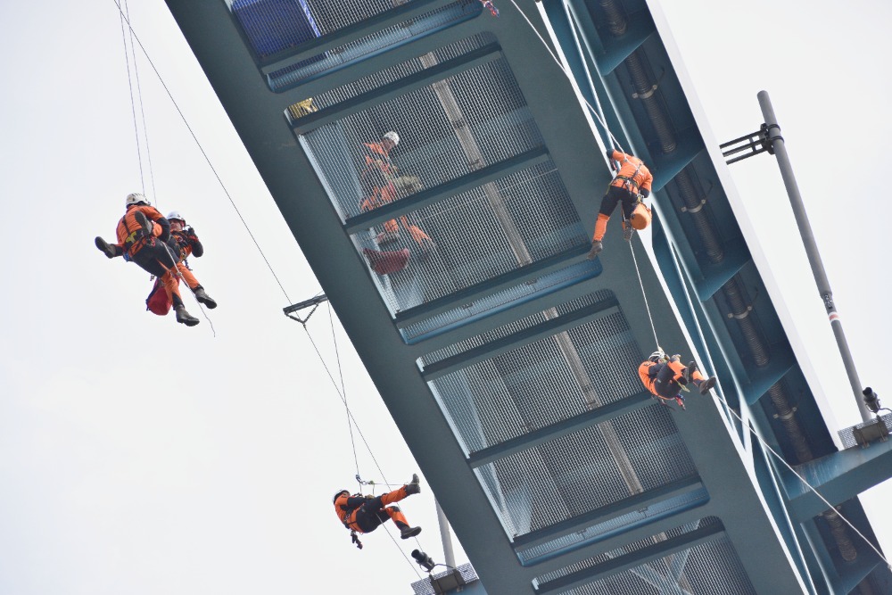 Společný výcvik lezců HZSJMK ze stanic Blansko, Brno, Hodonín, Znojmo a drážních hasičů se uskutečnil na železničním viaduktu ve Znojmě.