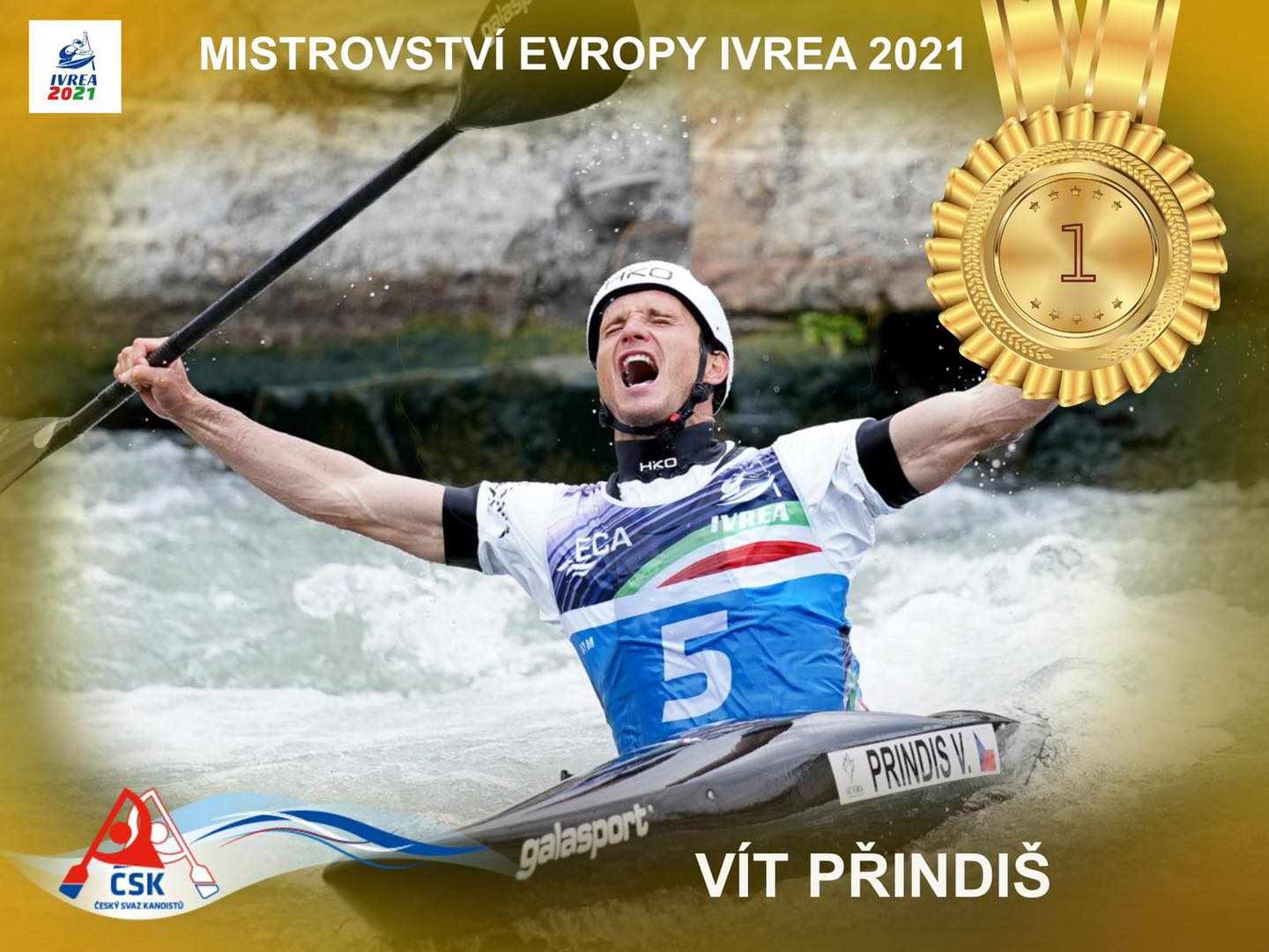 Kajakář Vít Přindiš se stal podruhé v kariéře mistrem Evropy ve vodním slalomu. V italské Ivree čistou jízdou navázal na titul z roku 2019. Na evropském trůnu vystřídal krajana Jiřího Prskavce, který po velké chybě ve finále skončil sedmý. Vavřinec Hradilek obsadil čtvrté místo s více než třísekundovou ztrátou na bronzového Slovince Petera Kauzera.