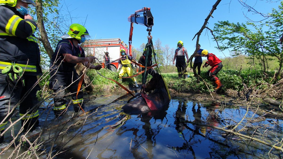Koně uvázlého v bahně jsme dnes po poledni vyprostili z potoku poblíž Mladče na Olomoucku.