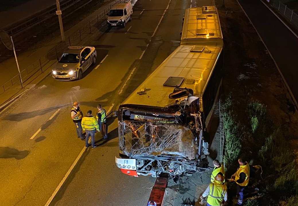 Nehoda noční linky v Kníničské ulici v Brně. Hasiči a záchranáři pomohli jedenácti zraněným, tři z nich měli zranění vážná. Autobus narazil do sloupu cca ve 23:20.
