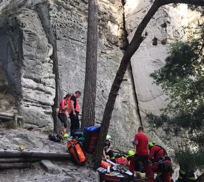Dvaatřicetiletá lezkyně se včera v podvečer po selhání jištění zřítila z výšky asi 7 metrů ze skály Dívčí ve skalních lokalitách Hruboskalska