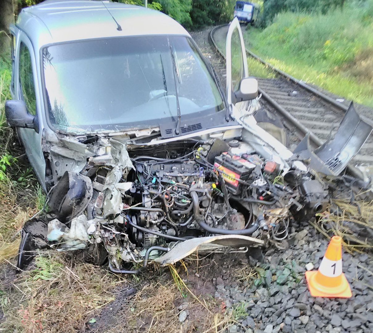 Hasiči z Nové Paky zasahovali u železniční nehody, kdy došlo na přejezdu v části Valdov ke střetu osobního auta s vlakem.