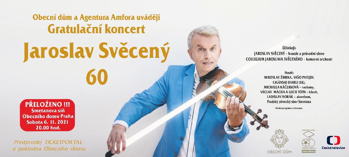 6.listopadu 2021 se Smetanovou síní Obecního domu v Praze rozezní houslové tóny jubilanta Jaroslava Svěceného. Gratulační koncert, který byl ze všeobecně známých důvodů dvakrát přeložen, je nabitý pestrobarevnou hudbou, originálními dramaturgickými nápady a výjimečnými hosty nejen z klasické hudby.