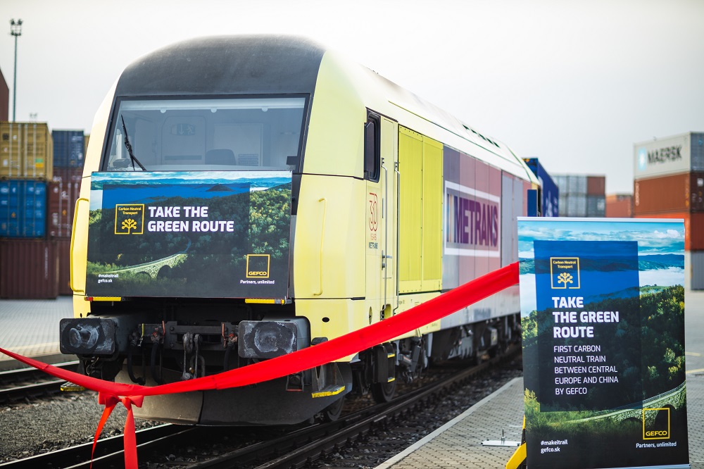 Logistická společnost GEFCO vypravila 15. listopadu 2021 z Dunajské Stredy první, 41-vagonový, uhlíkově neutrální ucelený vlak. Vydal se na třítýdenní cestu po nové Hedvábné stezce, cílovou destinací je čínský Si-an. Jde o první klimaticky neutrální železniční tok, který Skupina GEFCO zajistila pro klienta poptávajícího nízkouhlíkové ekologické řešení přepravy spotřebního zboží. GEFCO vykompenzuje 250 tun CO2 generovaného železniční dopravou v režimu door-to-door investicí do projektů certifikovaných podle Gold Standards (www.www.goldstandard.org). Vypravený vlak je vybaven prvky IoT (Internet of Things), které umožňují monitoring po celou dobu přepravy, kontrolu teploty v průběhu transportu a zajišťují stabilitu podmínek pro zboží během přepravy.