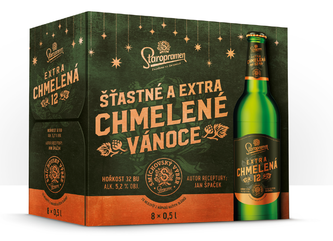 Značka Staropramen chce o letošních Vánocích dopřát všem milovníkům originálních pivních receptur opravdový sváteční zážitek, a tak uvádí Extra Chmelenou 12 ze Smíchovského výběru ve vánočním balení. To je k dostání na regálech obchodů již od listopadu.