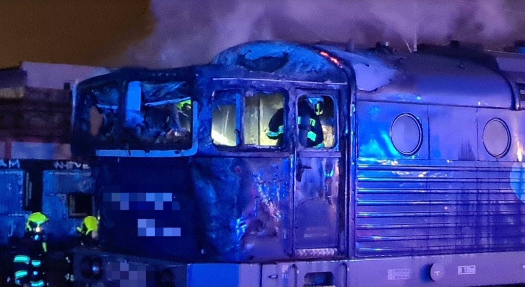 hasiči zasahovali u požáru lokomotivy poblíž hl. nádraží v Olomouci. Lokomotiva táhla nákladní vlak s 22 vagony benzinu