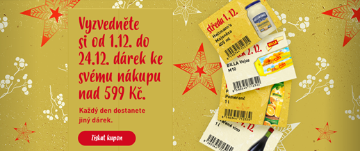 BILLA představuje další aktivitu ze své vánoční kampaně – adventní kalendář BILLA. Od začátku prosince až do Štědrého dne má BILLA pro své zákazníky připravenou speciální akci, díky které nabídne zákazníkům každý den něco jiného navíc. Při nákupu na 599 korun dostane zákazník výrobek z adventního kalendáře zdarma.