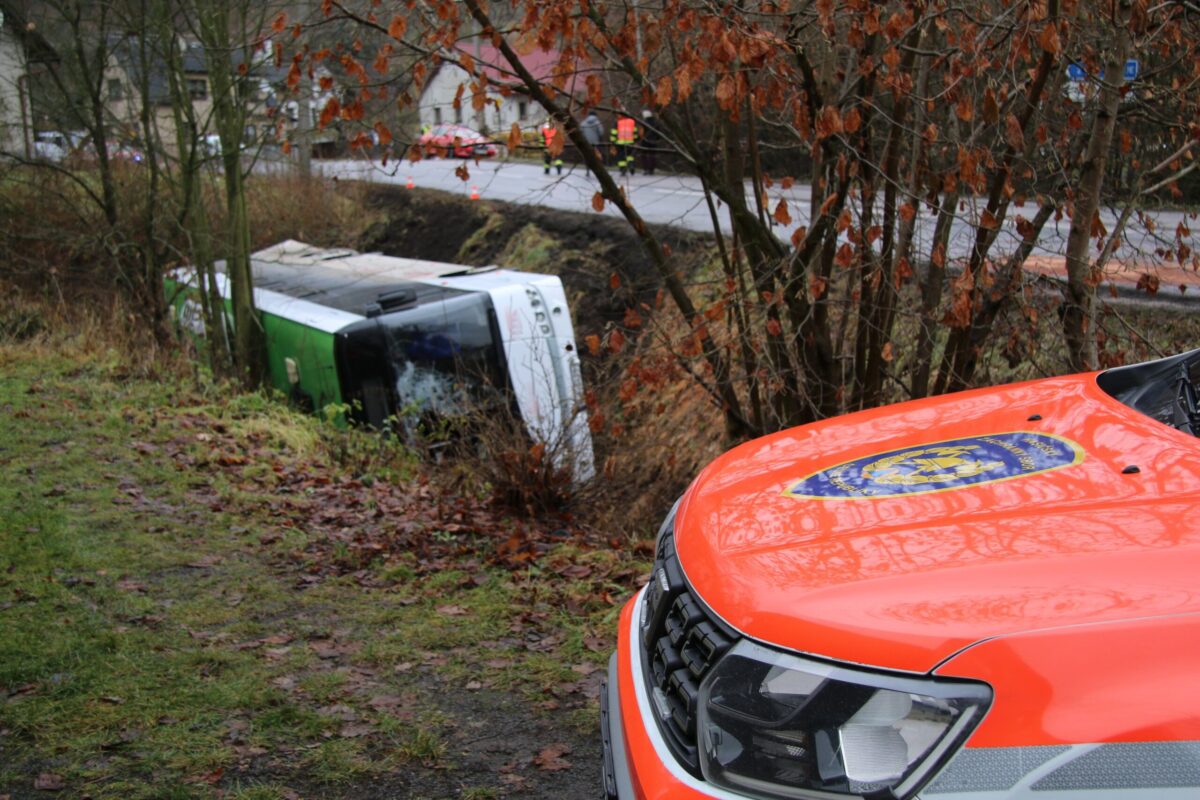 Hasiči Libereckého kraje zasahovali společně s hasičí Hradeckého kraje u dopravní nehody autobusu v Bradlecké Lhotě. Řidič kterého vyprostili byl v péči ZZS. Několika cestujícím poskyttli neodkladnou předlékařskou péči. Jednotky provedly protipožární opatření a opatření proti úniku provozních kapalin do potoka