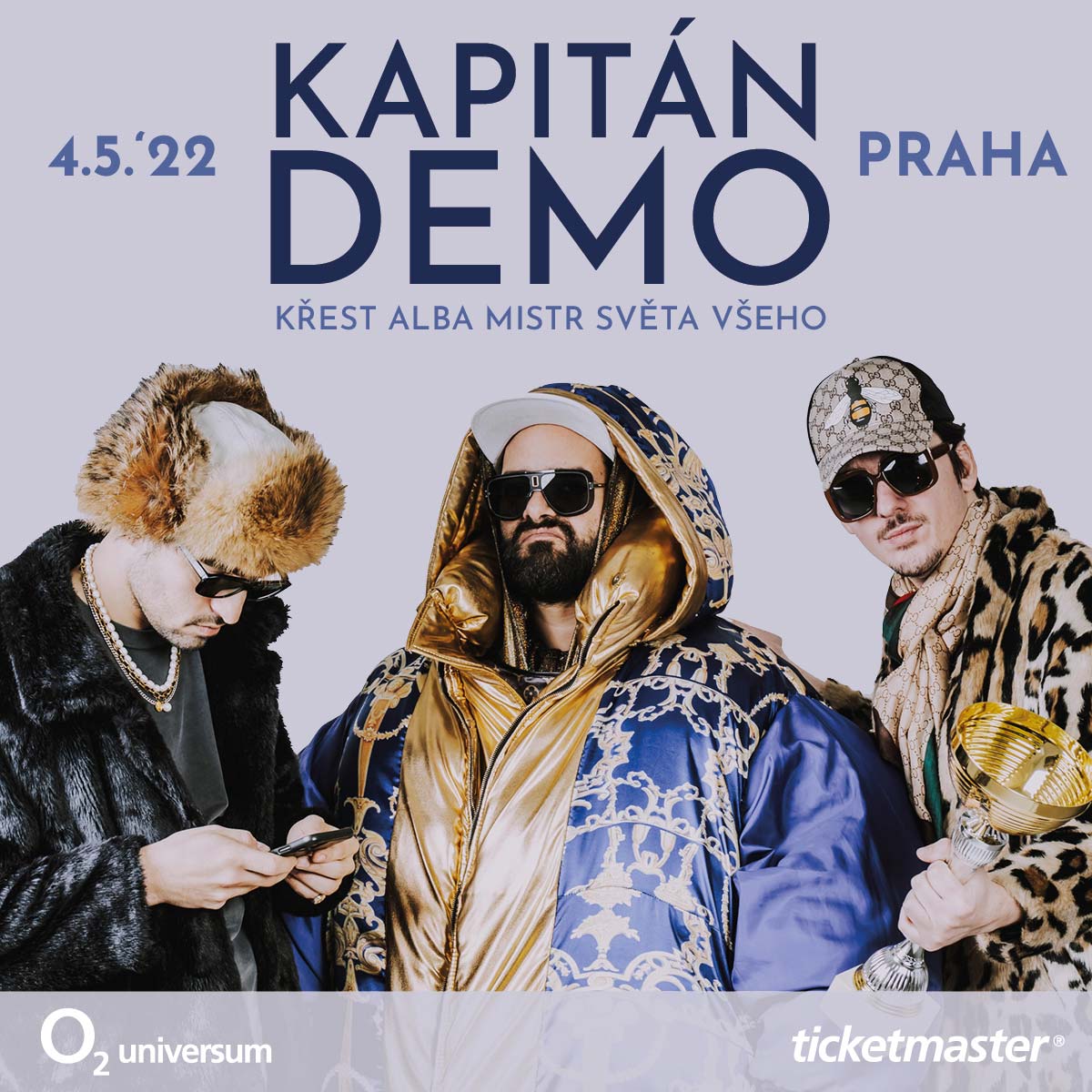 Křest dlouho očekávaného alba česko-italského podnikatele Kapitána Dema s názvem Mistr Světa Všeho proběhne 4. května 2022 v pražském O2 universu. Nová deska, která vyjde poslední den letošního roku, je nabitá zajímavými hosty z řad českých celebrit. Megalomanský koncert proběhne za účasti hned několika z nich. Fanoušci se můžou těšit třeba na zpěváka Dalibora Jandu, se kterým Demo nazpíval první singl Pudeme domů a budeme někoho pomlouvat, Jana Bendiga, Zdeňka Godlu a mnoho dalších plátců DPH.