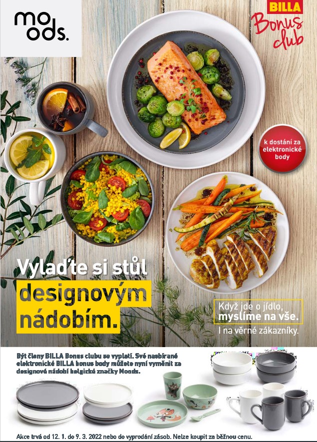 Být členem BILLA Bonus clubu se vyplatí. Společnost BILLA od druhé lednové středy nabízí všem členům svého věrnostního klubu šanci směnit nasbírané elektronické body za keramické talíře, misky a hrnky od belgické značky Moods. Oproti běžné ceně tak zákazníci mohou pořídit zboží až o 77 procent výhodněji.