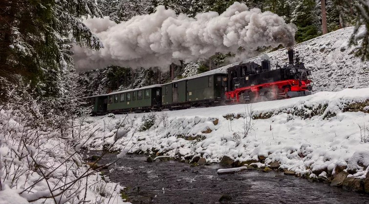 Zimní parní jízda na Preßnitztalbahn na trase Steinbach – Jöhstadt 29. ledna 2022