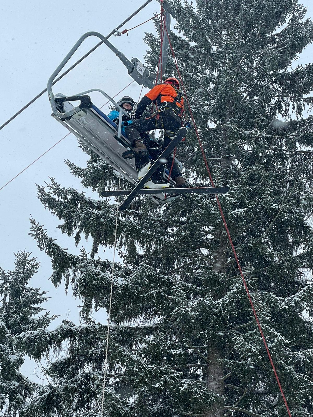 Hasiči Olomouc – Finišujeme se záchranami lyžařů z lanovky v Přemyslově. V akci bylo celkem 7 lezeckých skupin, které pomocí lezeckých technik zachraňovaly zhruba 40 osob.
