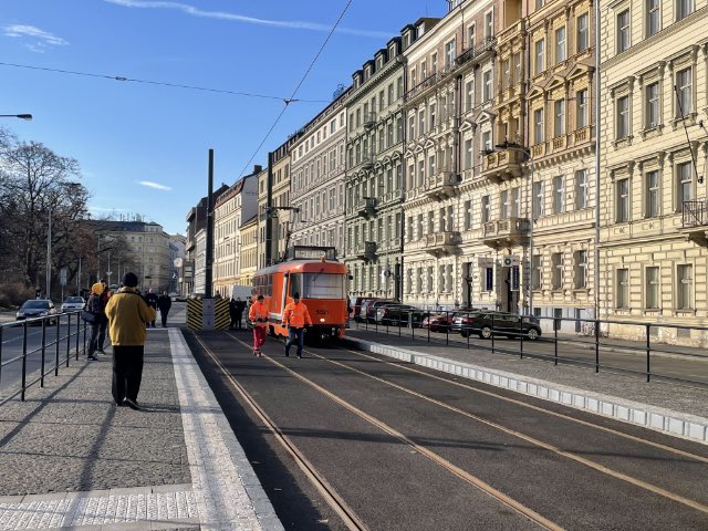 Po 30 letech dnes vjela opět tramvaj na část obnovené trati v Opletalově ulici a na nově zřízenou zastávku Hlavní nádraží.