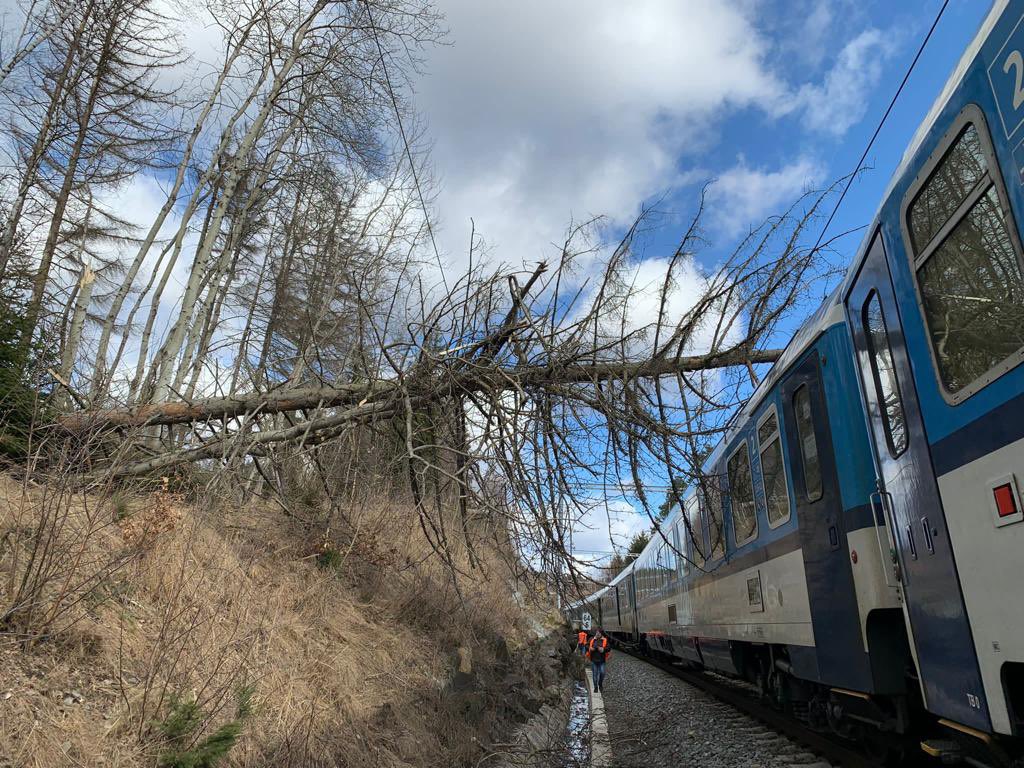 Vítr na železnici komplikuje dopravu – spadlé stromy zastavují vlaky po celé České republice – 19.2.2022