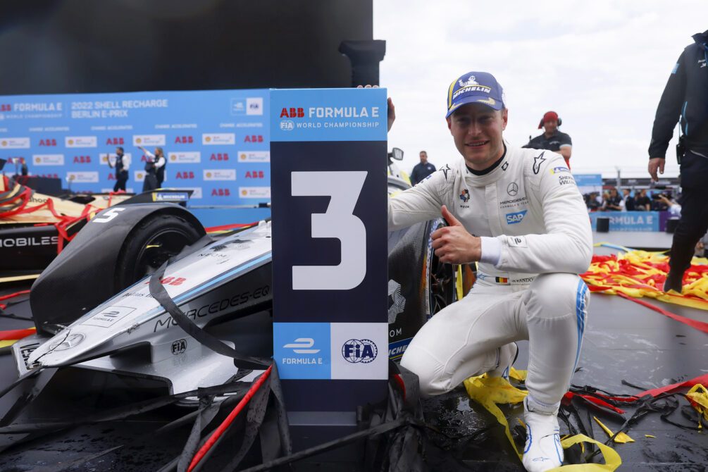 Podium pro MERCEDES-EQ FORMULA E TEAM na domácím závodě v Berlíně kdy Stoffel Vandoorne skončil třetí v sedmém závodě ABB FIA FORMULA E Mistrovství světa 2021/22. Nyck de Vris dojel na P 10.