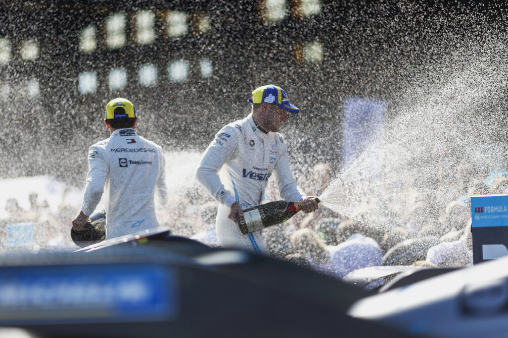 Úspěšný domácí závod týmu MERCEDES-EQ FORMULA E v osmém závodě ABB FIA FORMULA E mistrovství světa 2021/22: Nyck de Vries vyhrál závod 2 v Berlíně, Stoffel Vandoorne zajistil pódium umístěním na P3