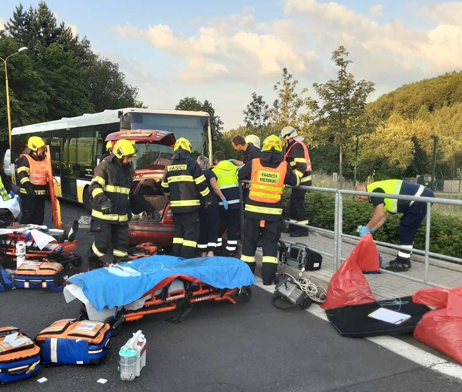 Dvě jednotky hasičů zasahovaly dne 11. 06. v 5:47 v Meziboří u dopravní nehody osobního vozidla s autobusem.