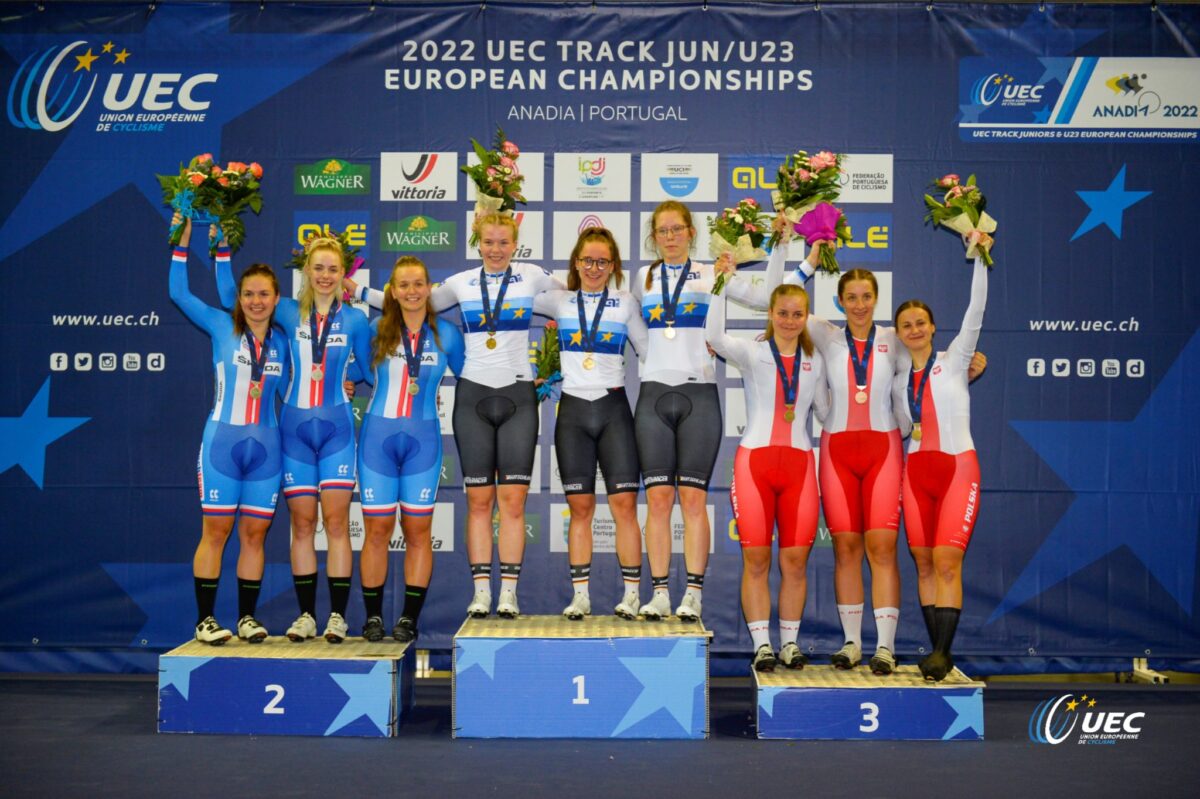 Hned první den evropského šampionátu dráhových juniorů a závodníků kategorie U23 získala v portugalské Anadii česká výprava medaili. Trojice, brněnských cyklistek, Anna Jaborníková, Michaela Poulová a Sára Kateřina Peterková získala stříbro, když nestačila pouze na trojici německých závodnic.