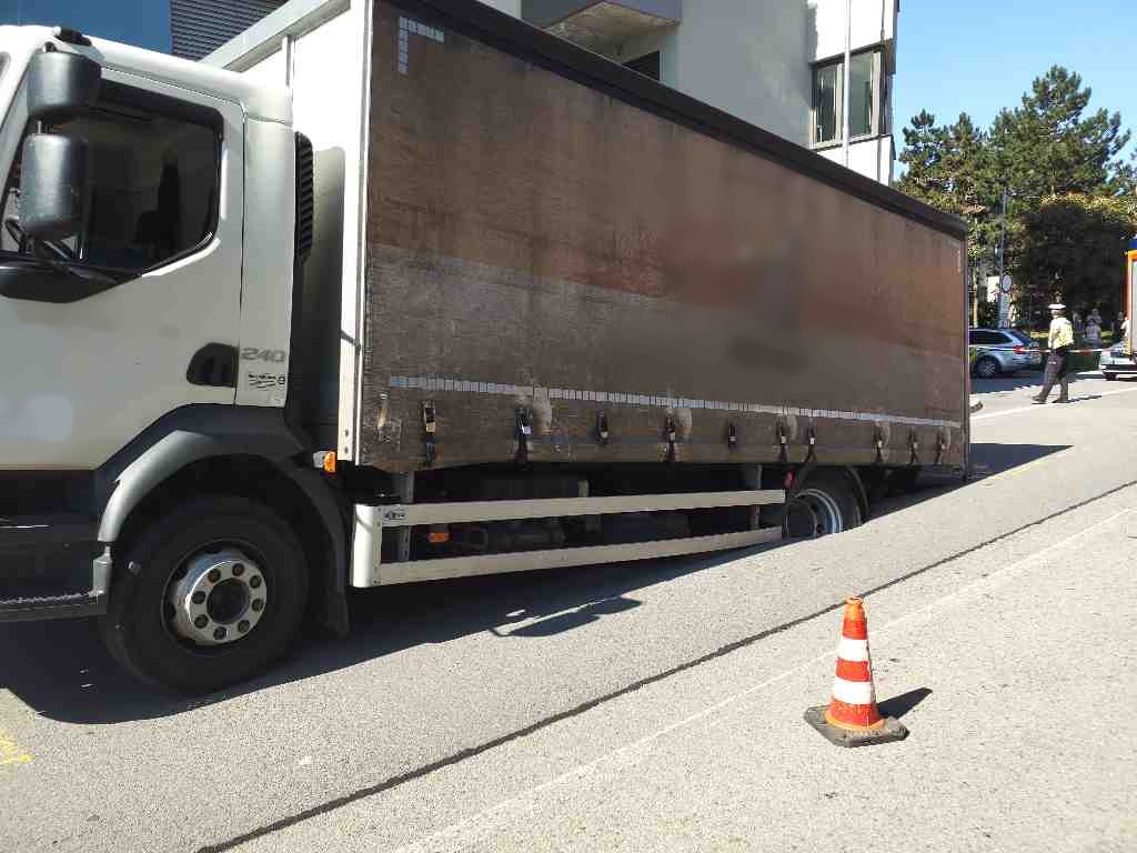 V brněnské ulici Poříčí se propadl nákladní vůz zadní nápravou do vozovky. Událost je bez zranění.