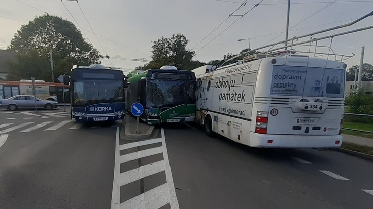 U OD Globus se na kruhovém objezdu srazily vzájemně celkem tři dopravní prostředky DPMP
