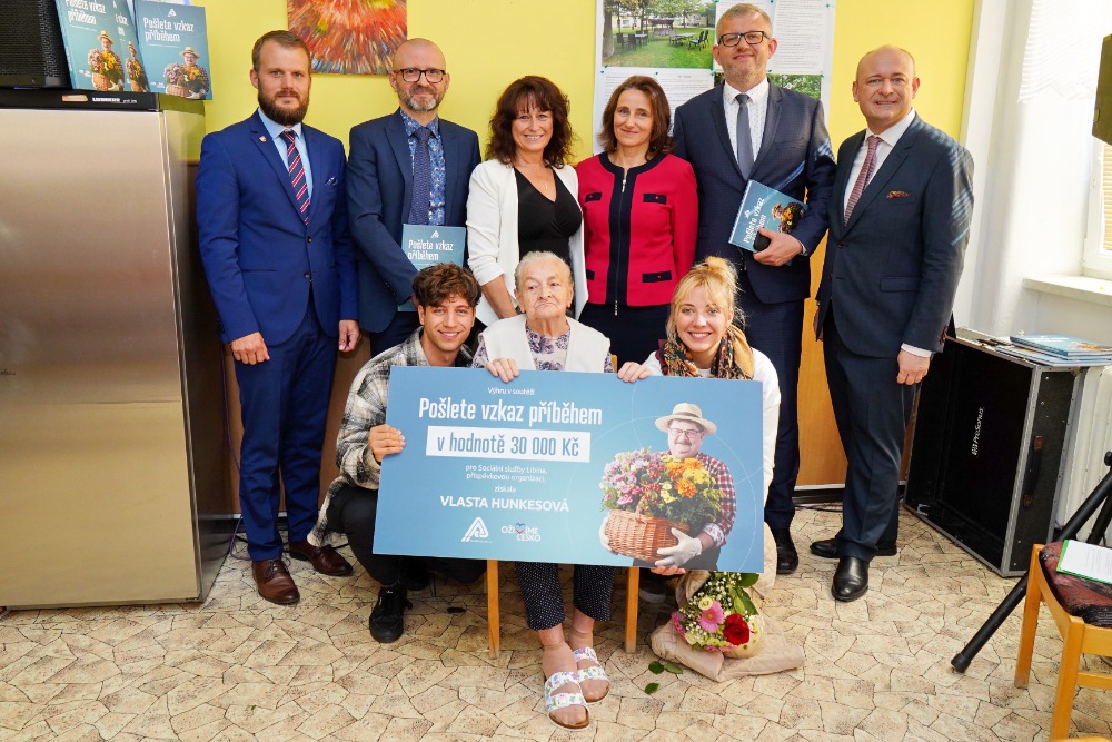 Již počtvrté gratulovala zástupkyně Pojišťovny VZP, a.s. Ing. Halina Trsková vítězi projektu „Pošlete vzkaz příběhem“. Po Sedlčanech a Znojmu tentokrát zavítala do Domova seniorů Libina na Šumpersku, aby devadesátišestileté vítězce, paní Vlastě Hunkesové, předala šek na 30 000 korun. Vedení domova za výhru pořídilo zahradní houpačku, dva zahradní stoly a osm zahradních židlí, které poslouží 72 obyvatelům Domova seniorů a Domova se zvláštním režimem Libina.
