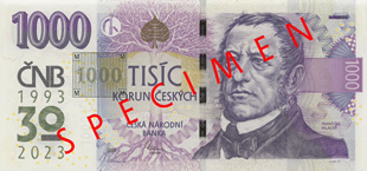 Přesně 30 let od zahájení úspěšného rozdělení česko-slovenské měny vydá Česká národní banka novou bankovku 1 000 Kč s přítiskem v podobě bankovkového kolku a výročního loga. K dostání bude od 8. února 2023 výměnou za jiné české bankovky nebo mince v hodnotě 1 000 Kč na pokladnách všech pracovišť ČNB, a to do vyčerpání zásob.
